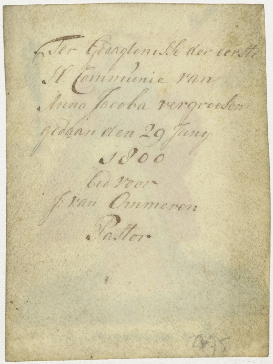 H. Emerentiani, ingekleurd, kz. H. Communie Vergoesen;1800;door pastoor J. van Ommeren;