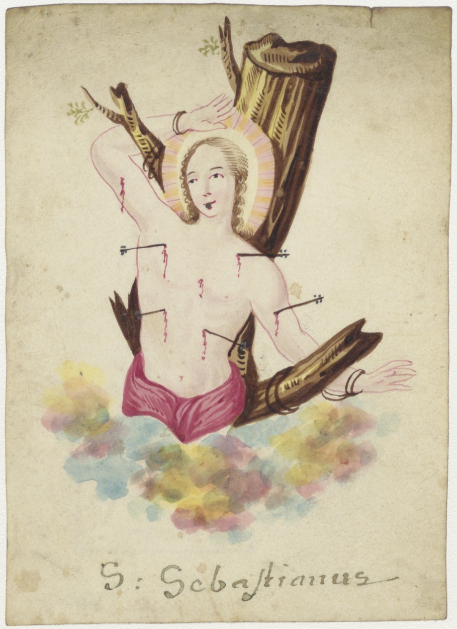 H. Sebastianus, ingekleurd, kz. Gift pastoor Klije aan Van Duyn;