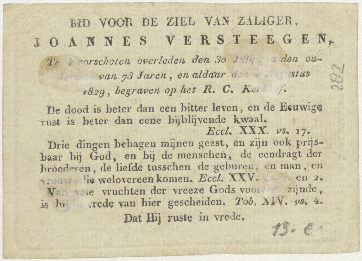 Verrijzenis van Christus, kz. Bid voor ziel Versteegen (+1829);Voorschoten;