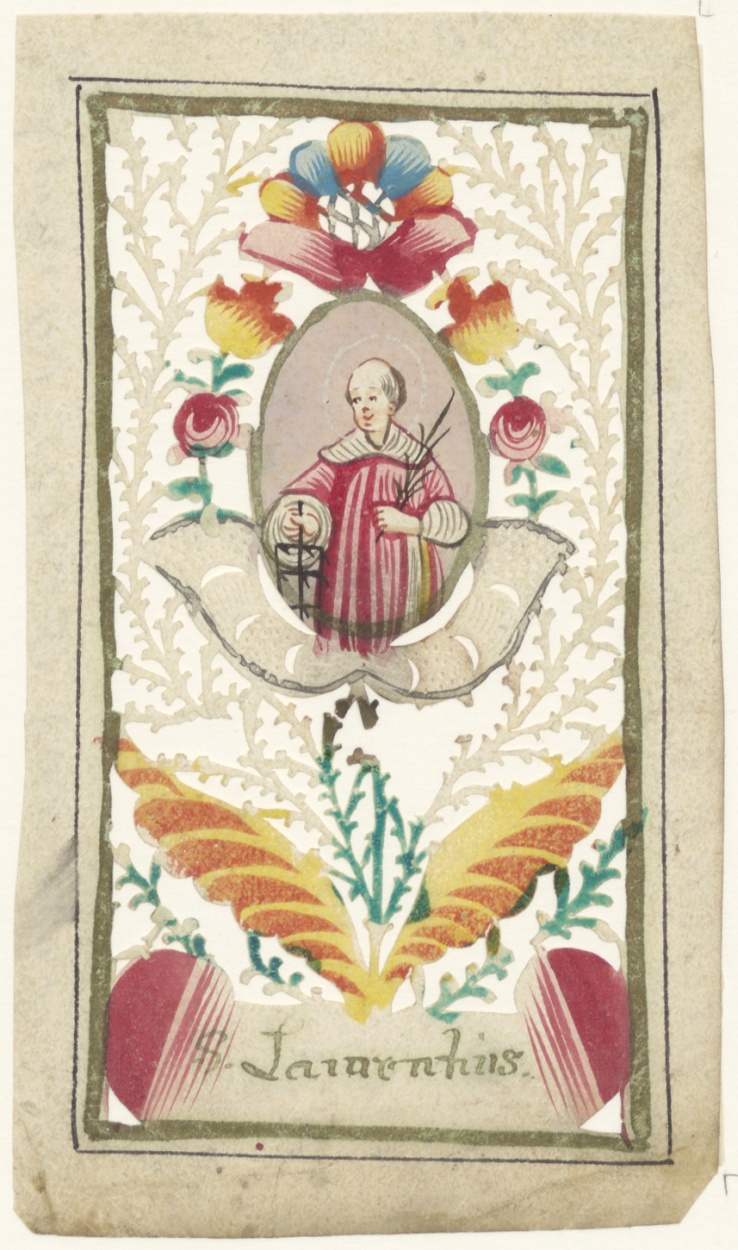 H. Laurentius, ingekleurd, kz. tekst (?)