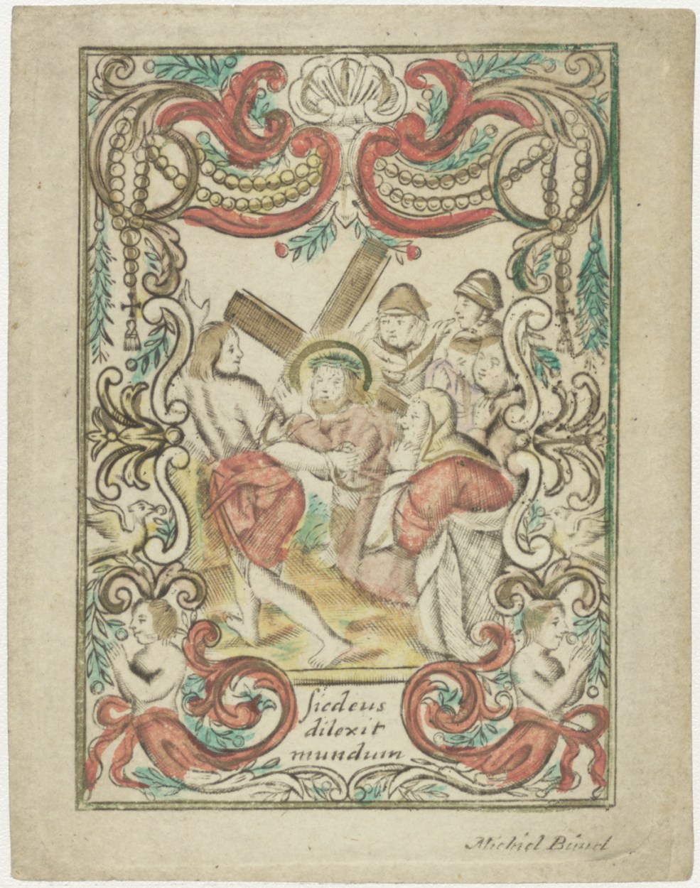 Christus' val onder het kruis, ingekleurd