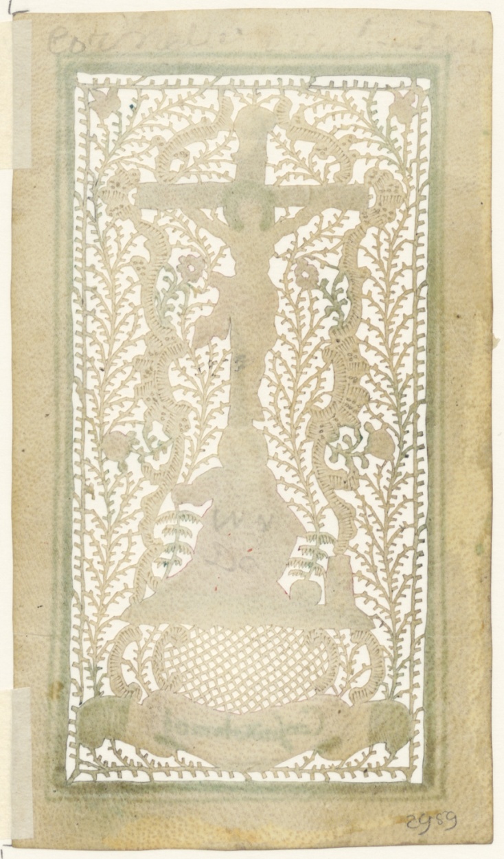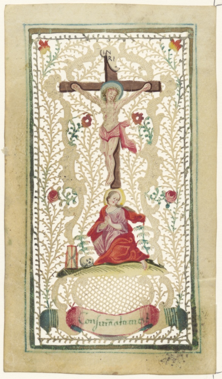 Maria Magadalena(?) met Christus aan kruis, ingekleurd