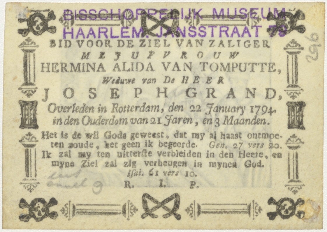 Aanbidding der koningen, kz. Bid voor ziel Grand-Tompatte (+1794);Rotterdam;