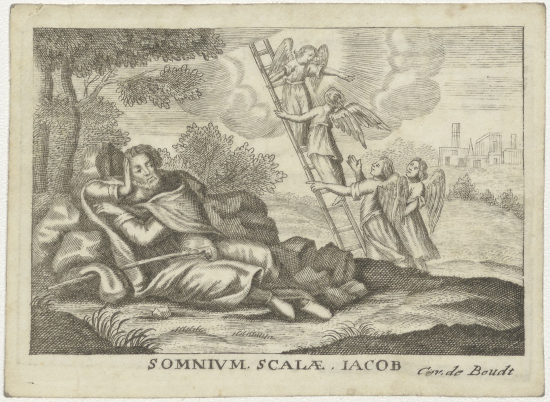 Doom van Jacob met ladder naar de hemel, kz. Bid voor ziel Rothe-Plaatevoet (+1783) te Amsterdam
