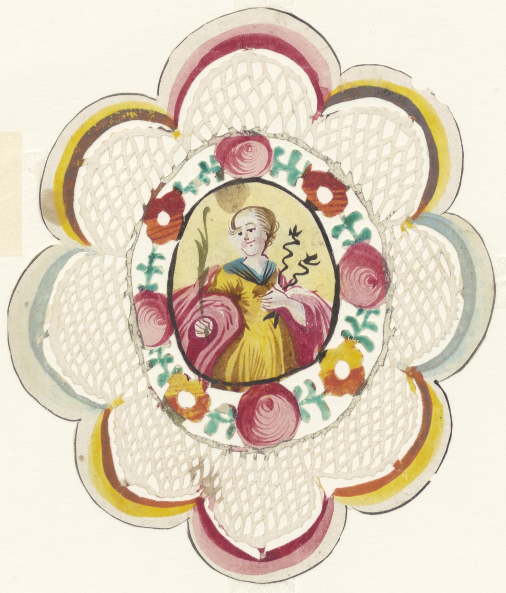 Vrouwelijke heilige, detail, ingekleurd