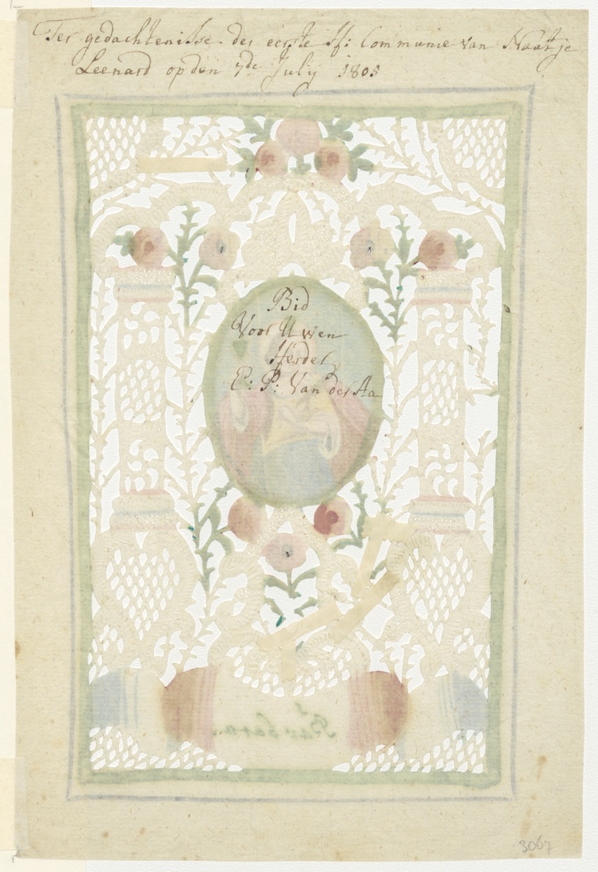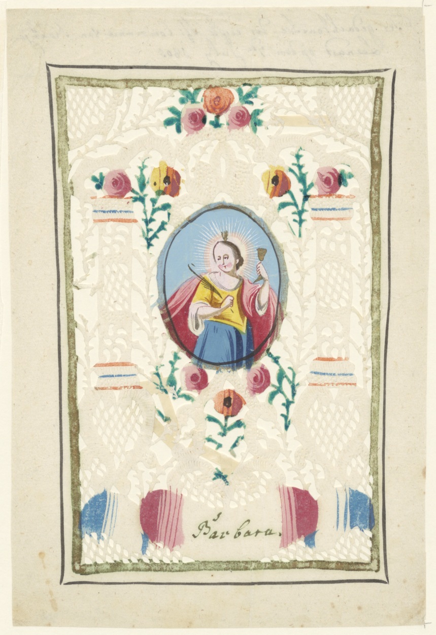 H. Barbara, ingekleurd, kz. H. Communie Leenard;1805;pastoor Van der Aa;