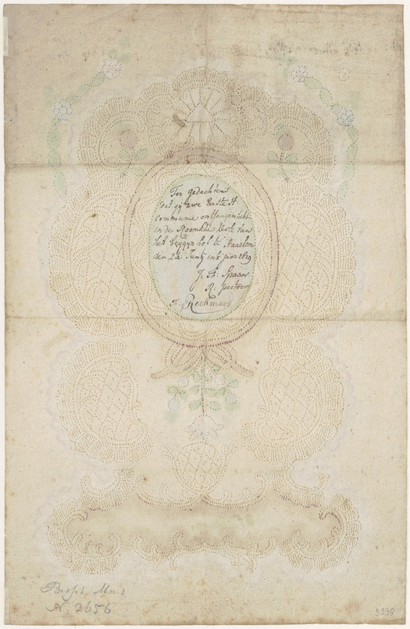 H. Thomas, ingekleurd, kz. H. Communie Reckman;Begijnhof;Haarlem;door pastoor J.Th. Spaan;1819;