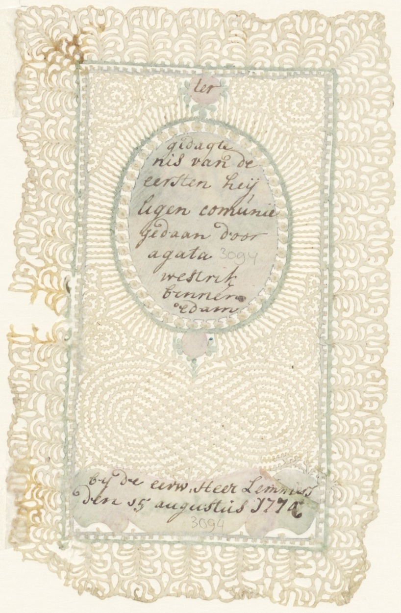 H. Antonius, ingekleurd, kz. H. Communie;Westrik;1774;bij pastoor Lemmers;Edam;