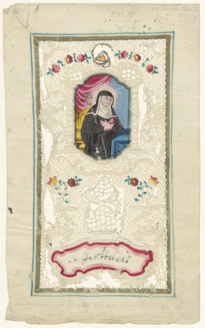 H. Gertrudis van Helfta, ingekleurd, kz. H. Communie;Haarlem;1800;