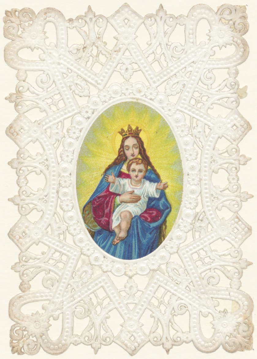 Maria met kind, ingekleurd, kz. Bid voor mijn broer (Frans);