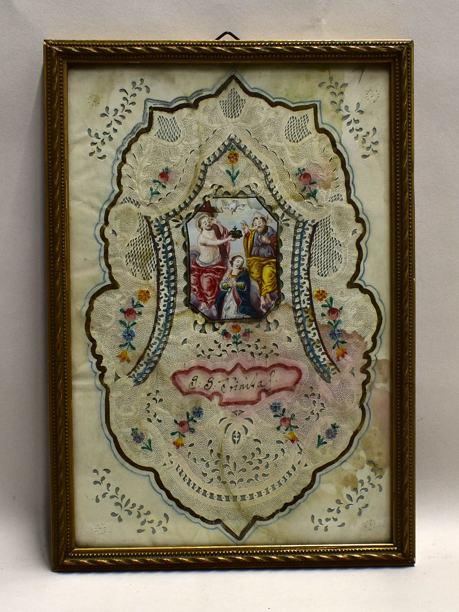 H. Drie-eenheid, Trinitas met Maria, in lijst, ingekleurd