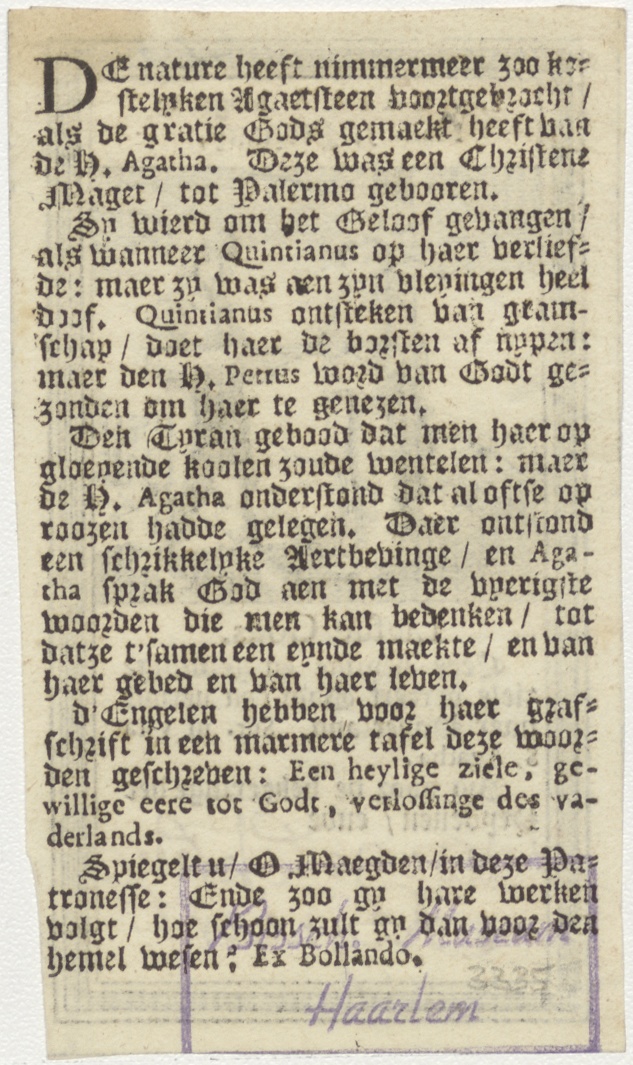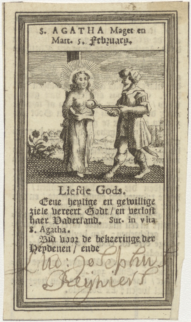 H. Agatha met gebed, kz. Reyniers;tekst;