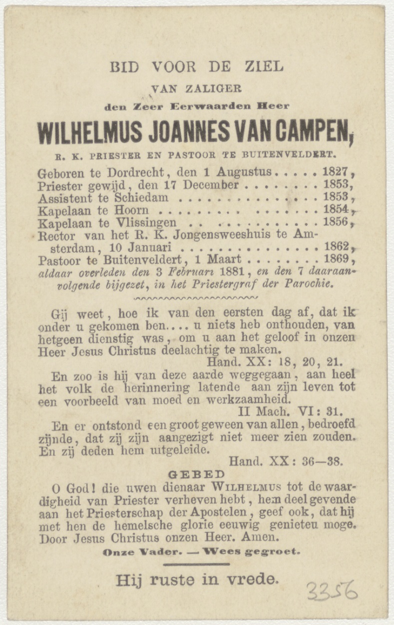 Kruis met doornenkroon, kz. Religieus; bid voor ziel Wilhelmus Joannes van Campen (+1869), Buitenveldert, pastoor te Buitenveldert