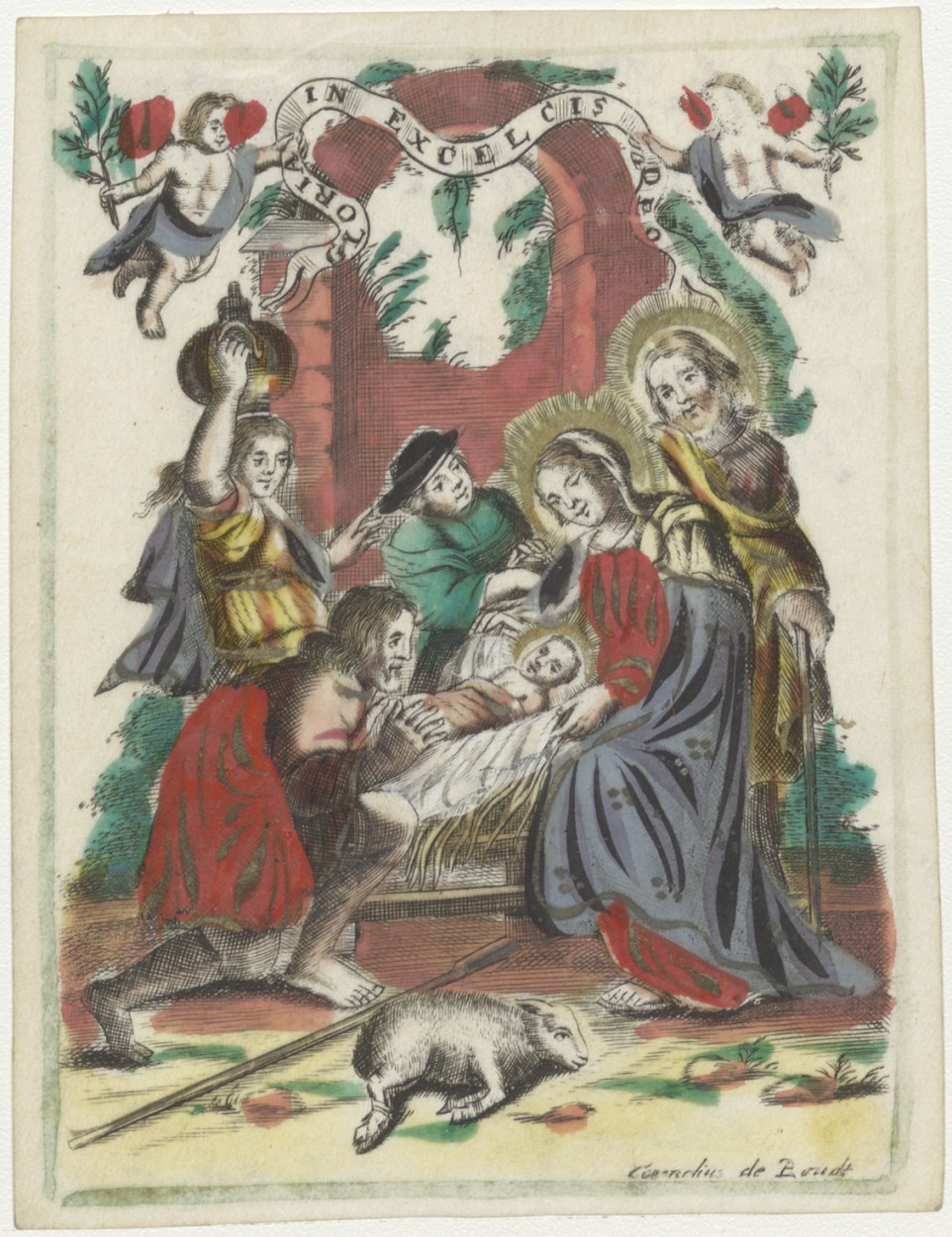 Aanbidding der herders, ingekleurd, kz. ter gedachtenis van Peens voor Somerdijk