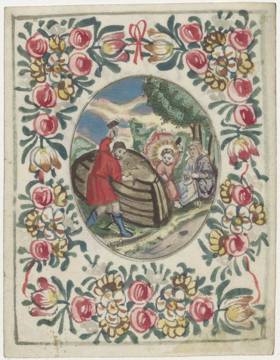 H. Familie; timmermanswerkplaats, ingekleurd, kz. H. Communie van Til;1751