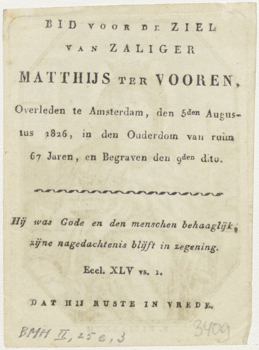H. Elisabeth, kz. bid voor ziel ter Vooren (+1826) Amsterdam