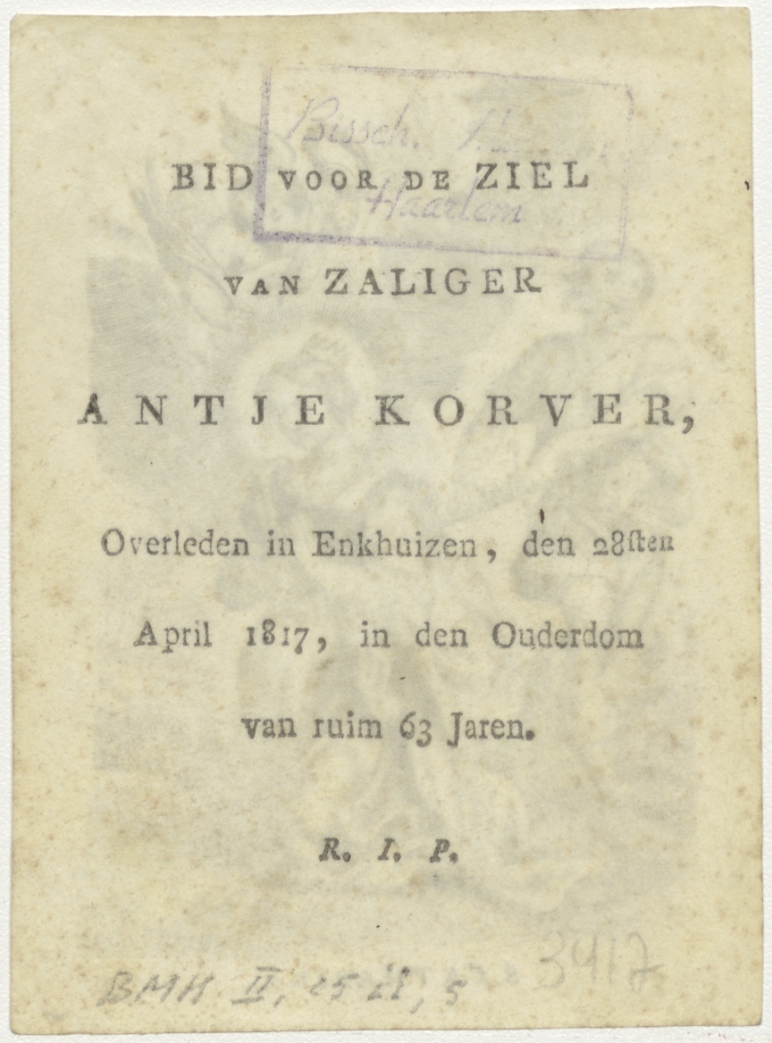 H. Catharina;onthoofding van, kz. Bid voor ziel Korver (+1817) Enkhuizen