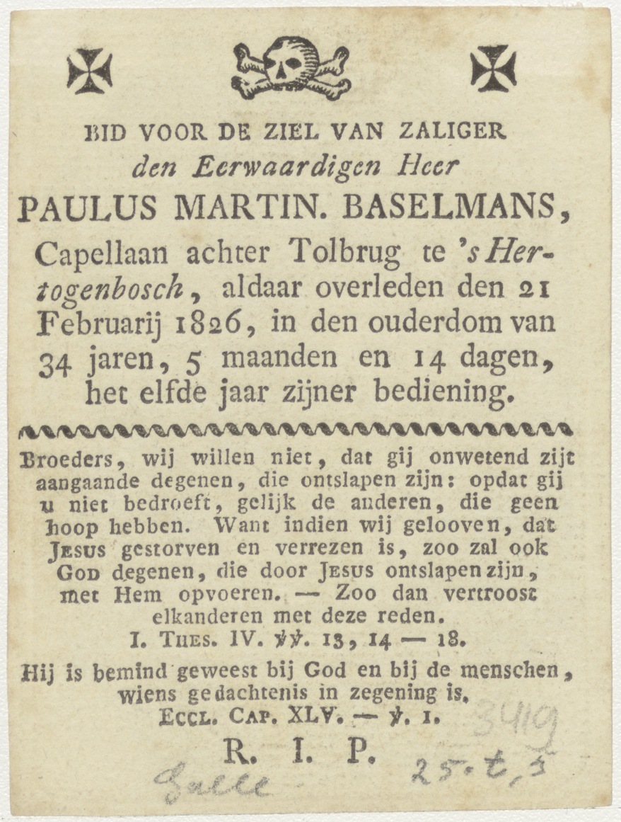 H. Christophorus, kz. religieus; bid voor ziel Paulus Baselmans (+1826) kappelaan achter Tolbrug 's-Hertogenbosch