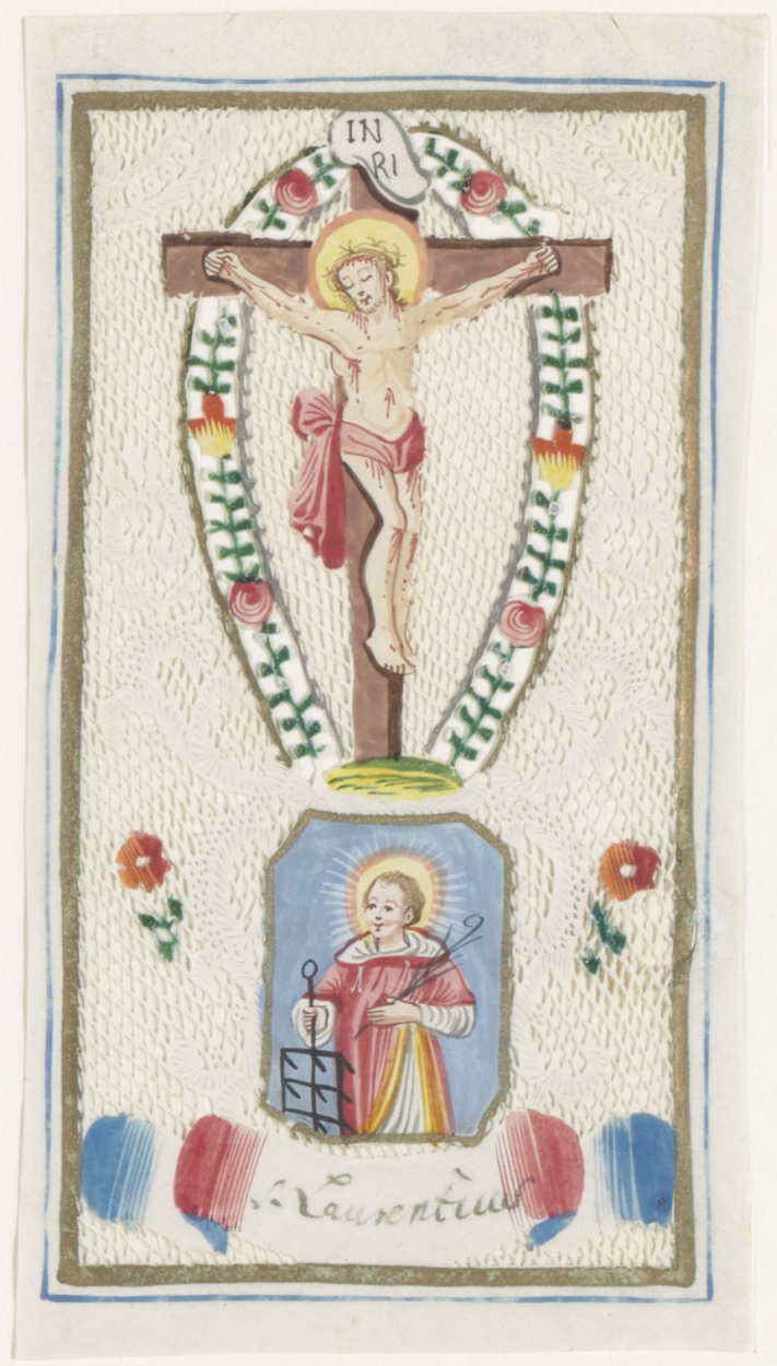 Christus aan het kruis; H. Laurentius, ingekleurd