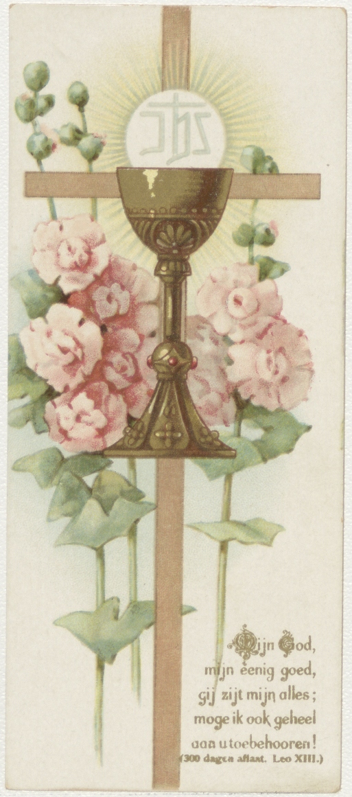 Kelk met H. Sacrament, ingekleurd, kz. tekst (?)