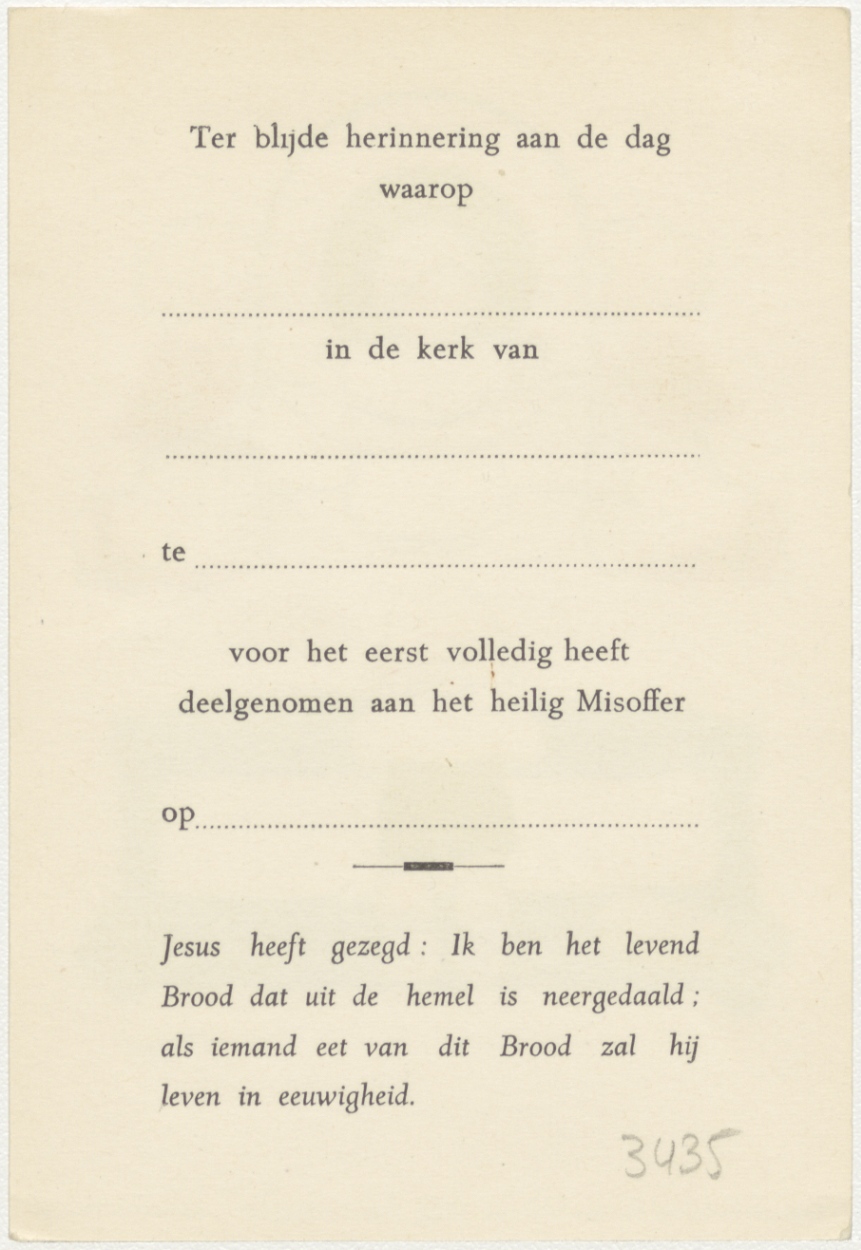 Communiecant, ingekleurd, kz. H. Communie niet ingevuld