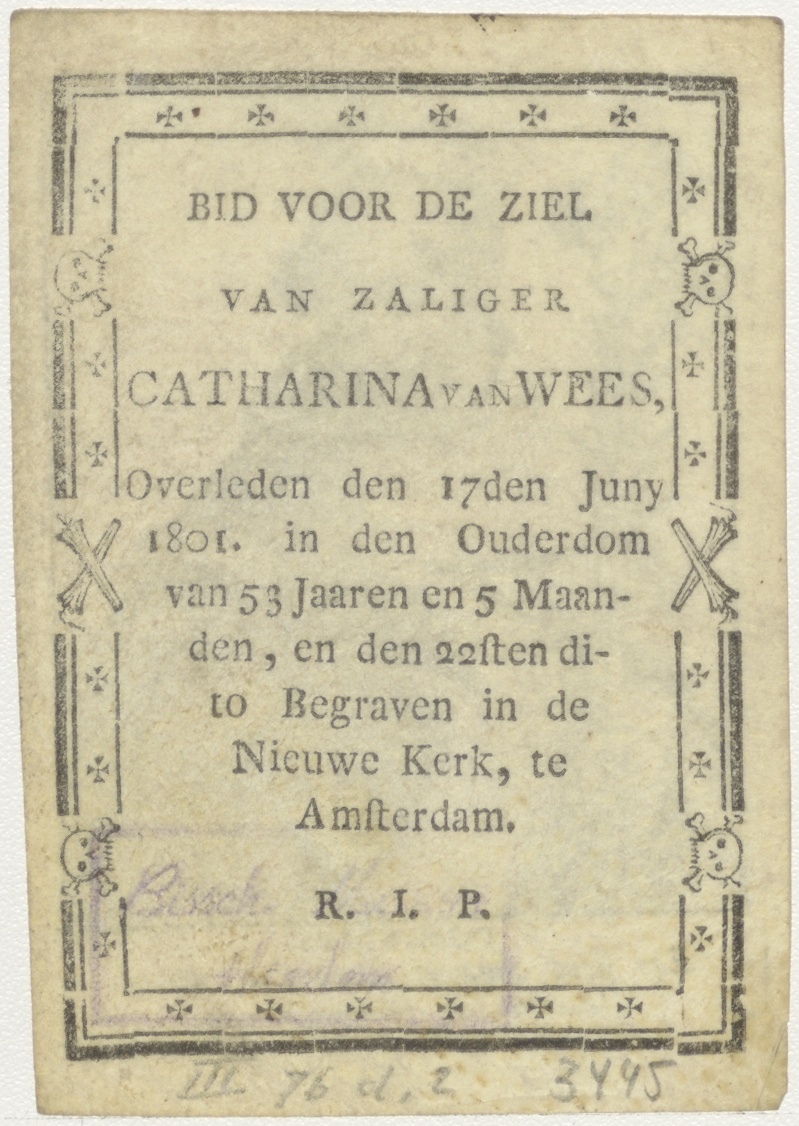 H. Dominicus, kz. bid voor ziel van Wees (+1801) Amsterdam
