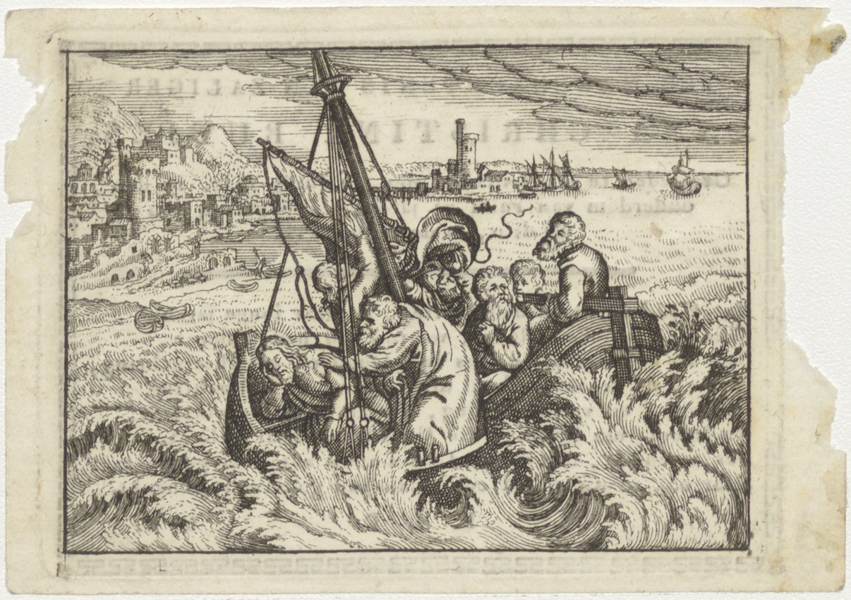 Christus met apostelen op boot op het meer van Galilea, kz. bid voor ziel Rutjes (+1817) Amsterdam