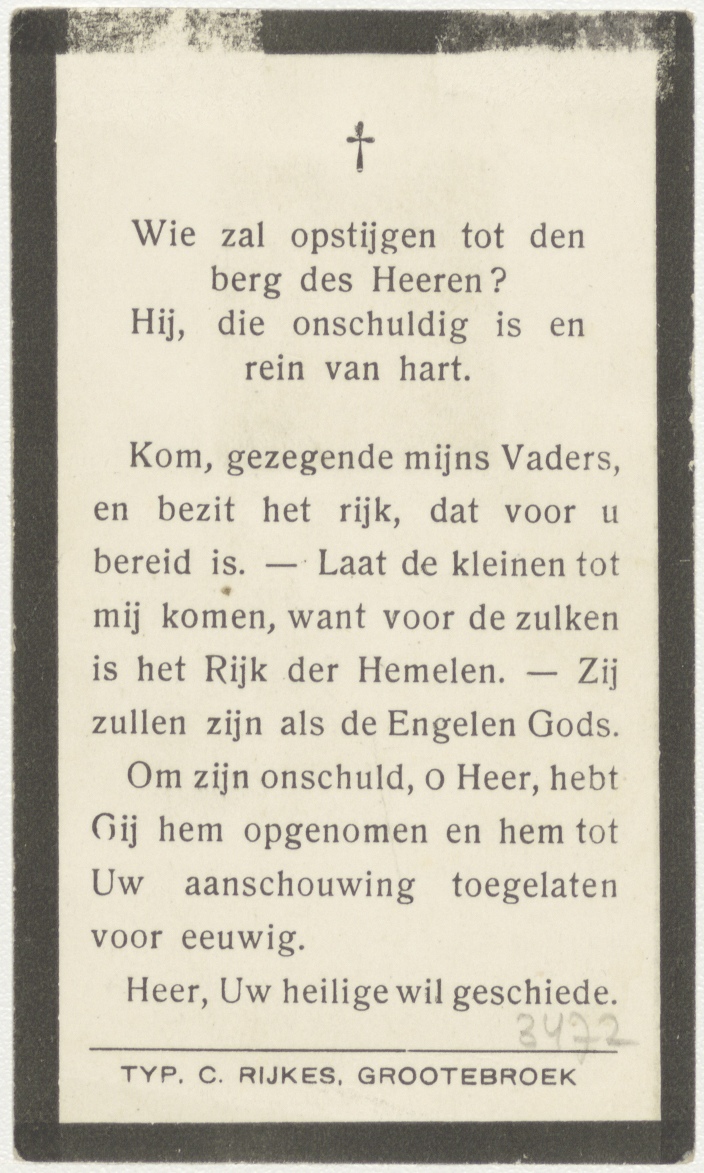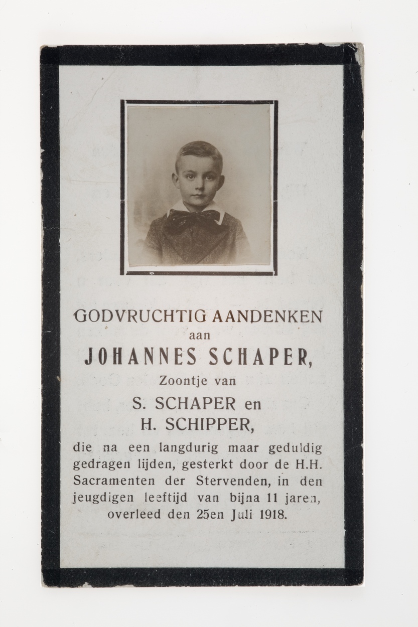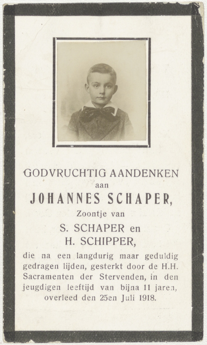Bidprent met fotoportret van Johannes Schaper, kz. bid voor ziel Schaper (+1918) Grootebroek(?)
