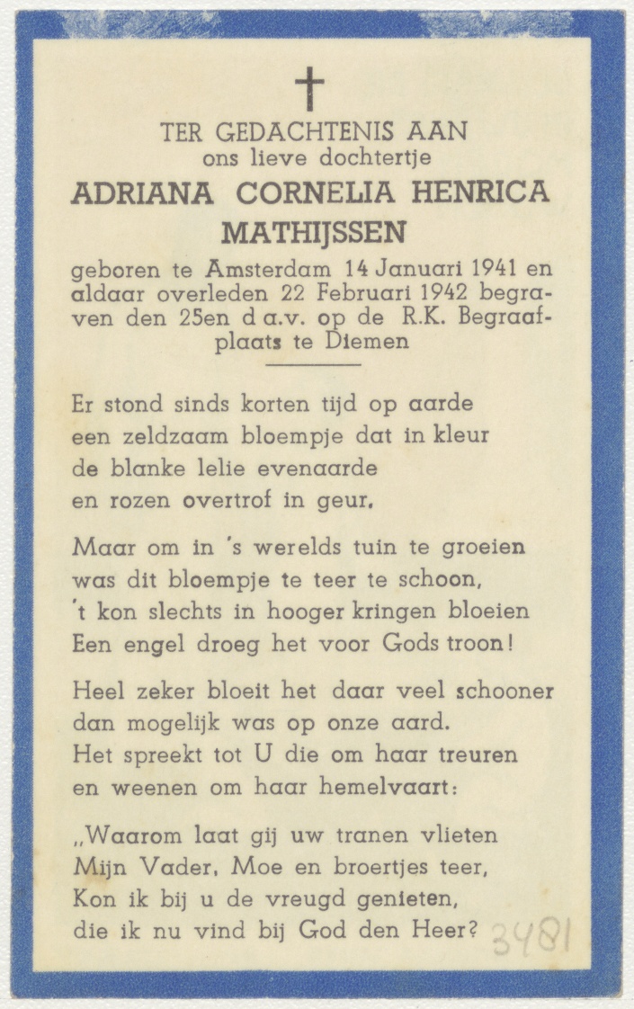 Christus met kinderen, ingekleurd, kz. bid voor ziel Mathijssen (+1941) Amsterdam