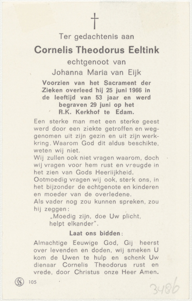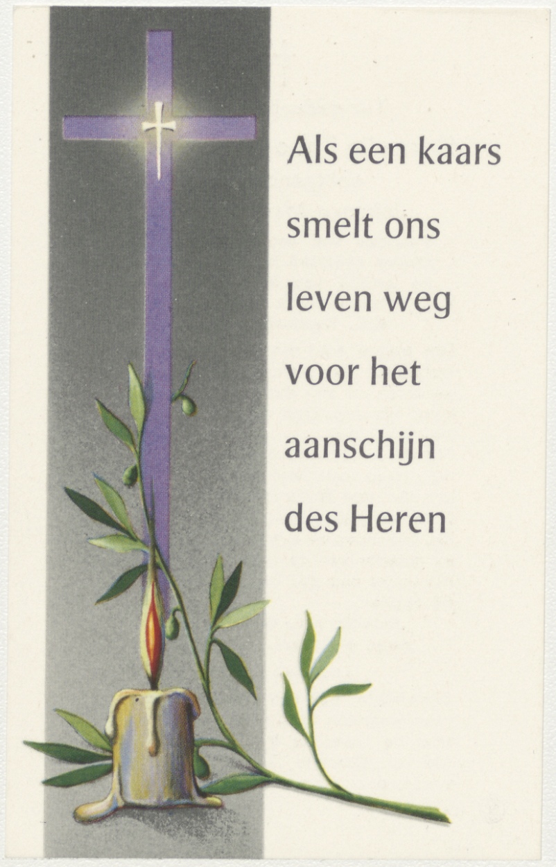 Kruis met kaars, kz. Bid voor ziel van Eyk-Eeltink (+1966) Edam