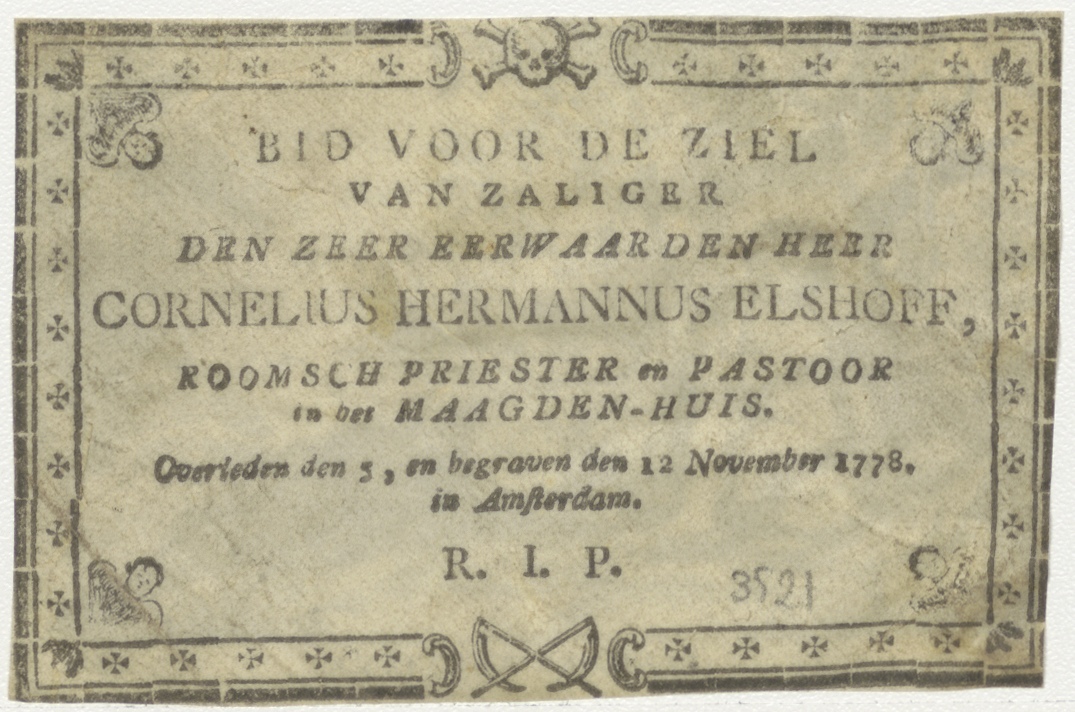 H. Joannes de Doper, kz. Religieus; bid voor ziel Cornelius Elshoff (+1778) Amsterdam pastoor maagdenhuis