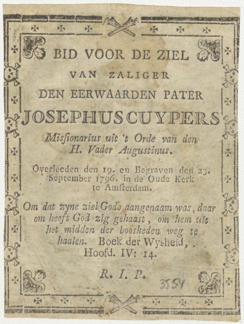 H. Joseph (Jozef), kz. Religieus; bid voor ziel Josephus Cuypers (+1796) missionaris orde van H. Augustinus Amsterdam