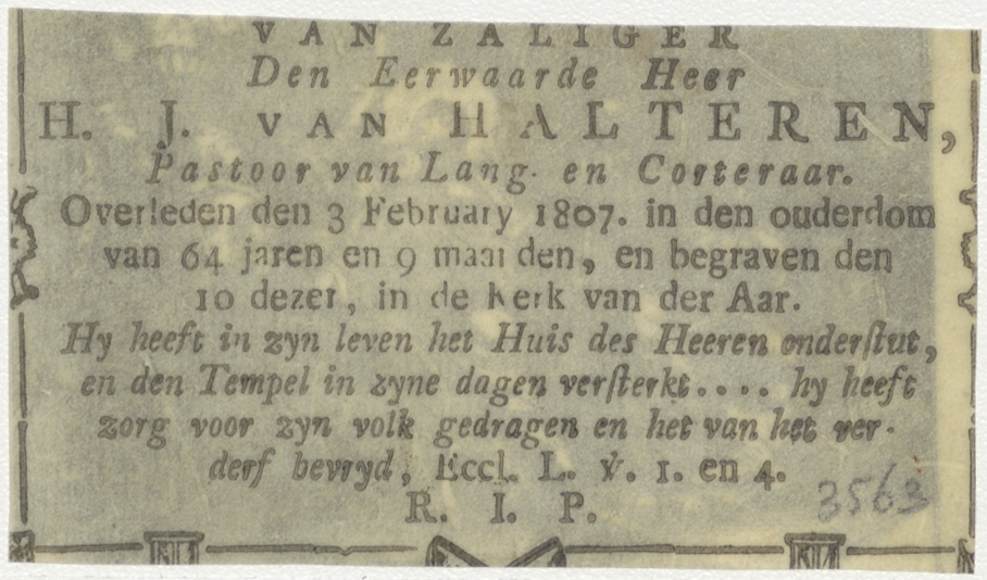 Judas kust Christus, kz. Religieus; bid voor ziel H.J. van Halteren (+1807) pastoor van Lang- en Cortenaar