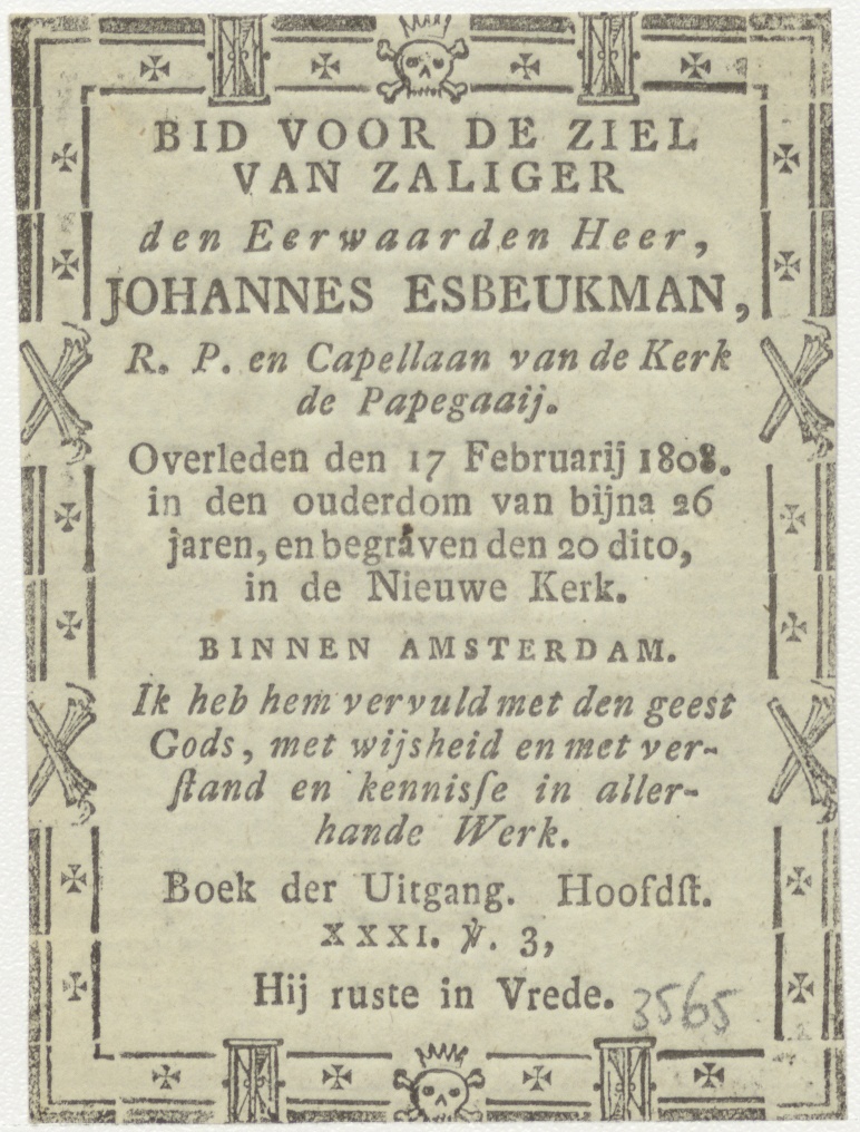H. Familie, kz. Religieus; bid voor ziel Johannes Esbeukman (+1808) pastoor de Papegaay Amsterdam