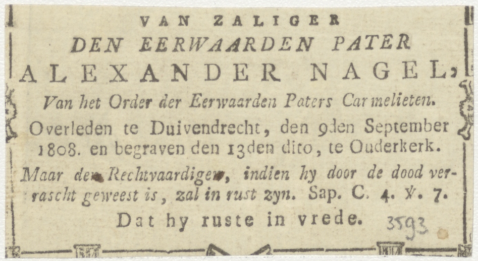 Wonder van Christus; de wonderbaarlijke broodvermenigvuldiging, kz. Religieus; bid voor ziel Alexaner Nagel (+1808) Carmeliet,Duivendrecht