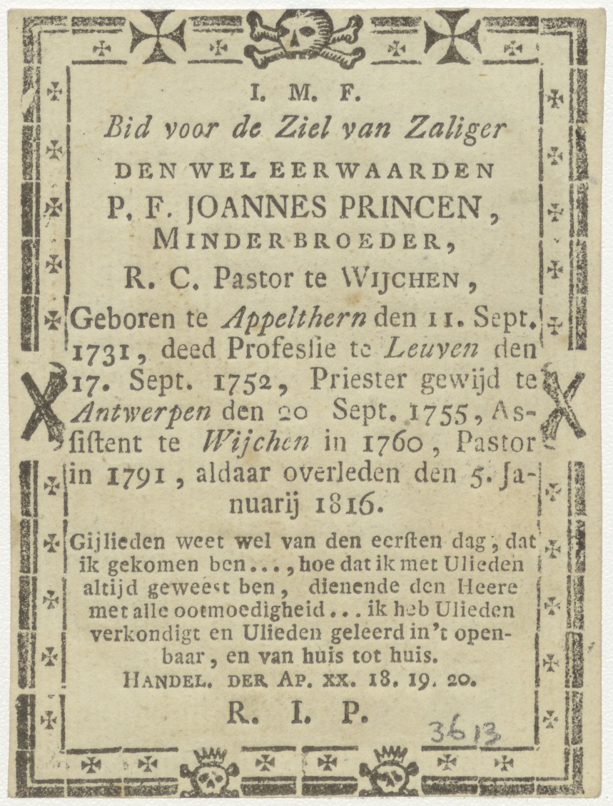 H. Stefanus, kz. Religieus; bid voor ziel P.F. Joannes Princen (+1816) minderbroeder te Wijchen