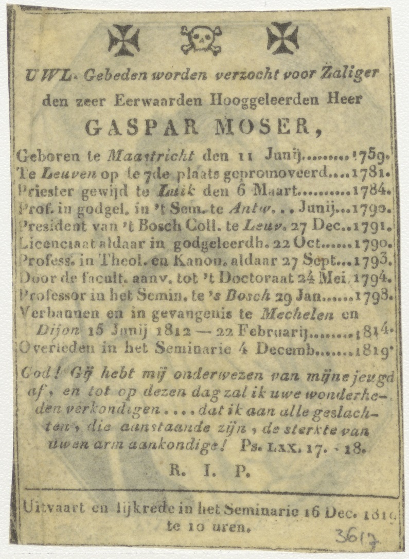 H. Mattheus, kz. Religieus; bid voor ziel Gaspar Moser (+1819) pastoor seminarie Den Bosch