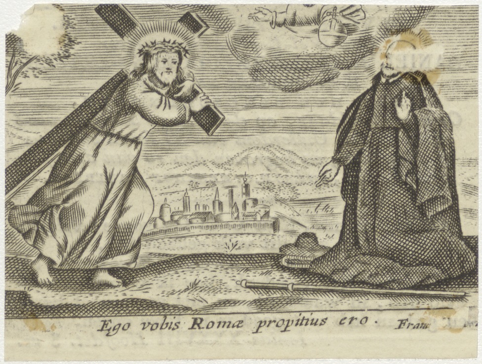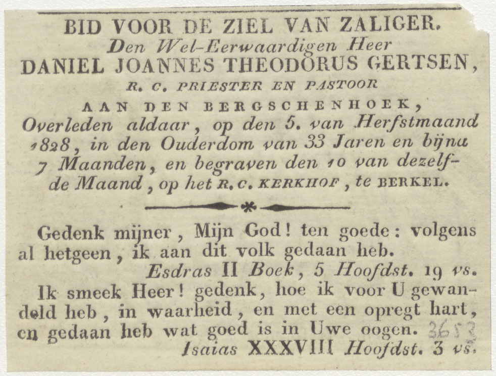 Christus met kruis en Jezuïet, kz. Religieus; bid voor ziel Daniel Gertsen (+1828) pastoor aan de Berschenhoek