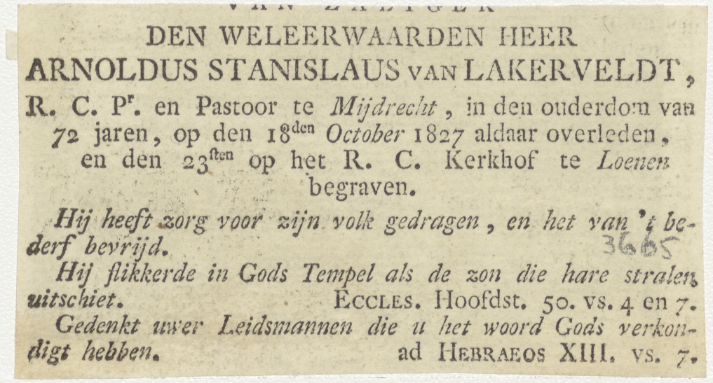 Christus Ecce Homo, kz. Religieus; bid voor ziel Arnoldus van Lakerveldt (+1827) pastoor te Mijdrecht