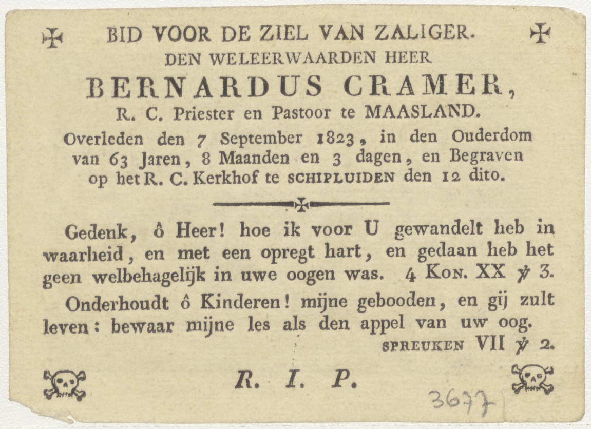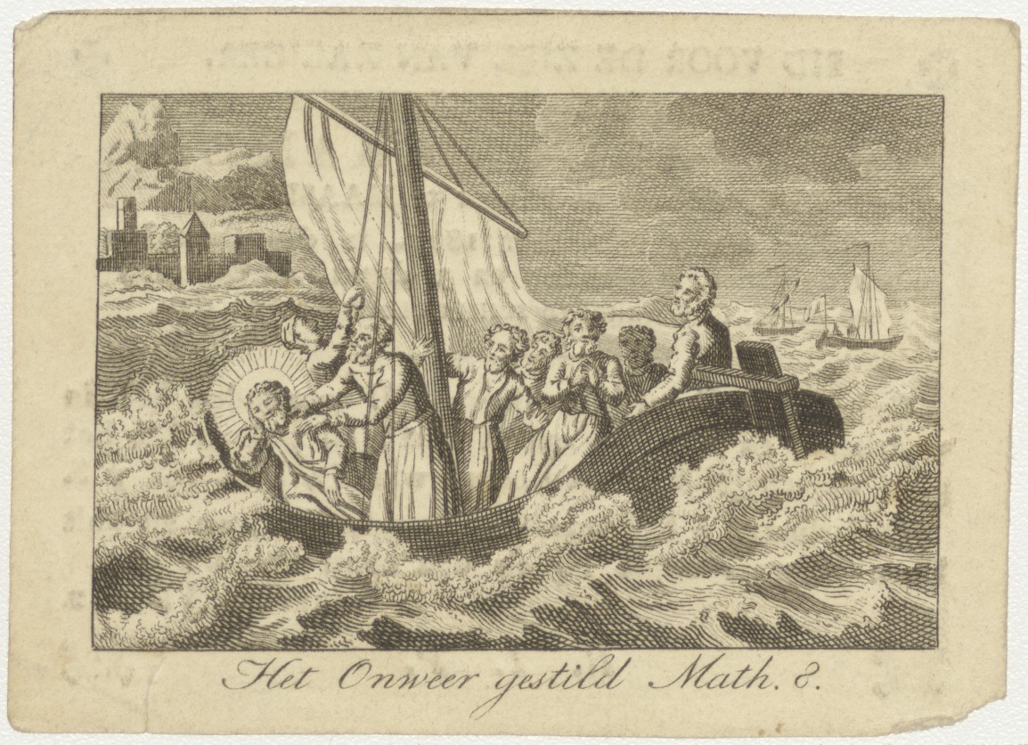 Het onweer gestild (Math.2) Christus en apostelen, kz. Religieus; bid voor ziel Bernardus Cramer (+1826) pastoor te Maasland