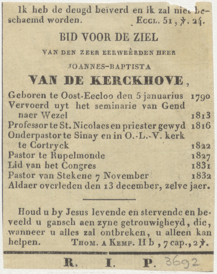 H. Franciscus, kz. Religieus; bid voor ziel Joannes van de Kerckhove (+1832) pastoor te Rupelmonde