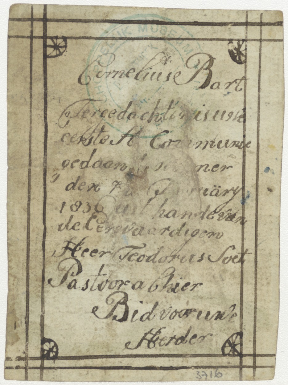 H. Franciscus, ingekleurd, kz. H. Communie Bart 1836 door pastoor Teodorus Soet