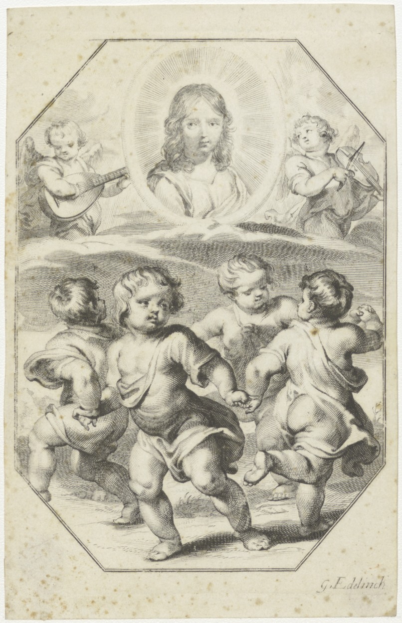 Christuskind aanbeden door engeltjes