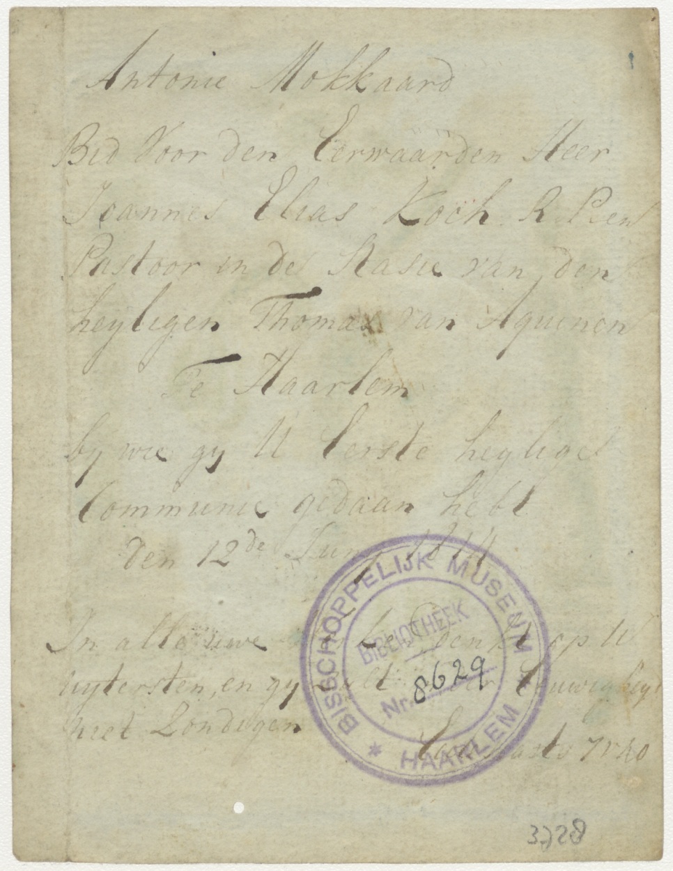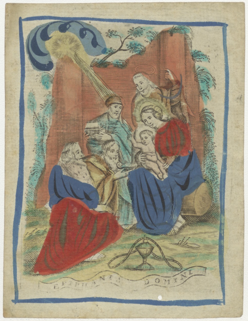 Aanbidding der koningen, ingekleurd, kz. H. Communie Mokkaard, 1814, staatsie van den heyligen Thomas van Aquino te Haarlem