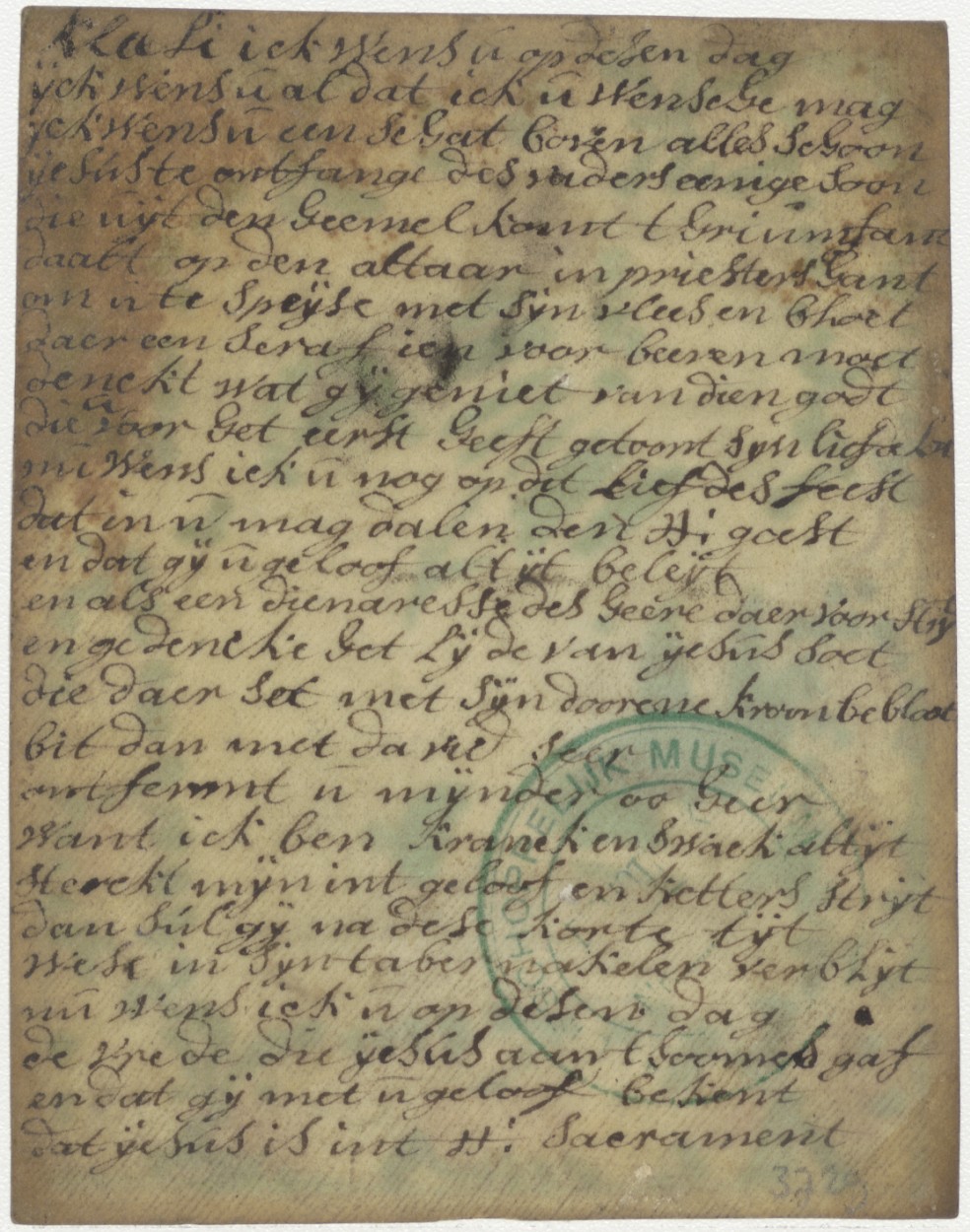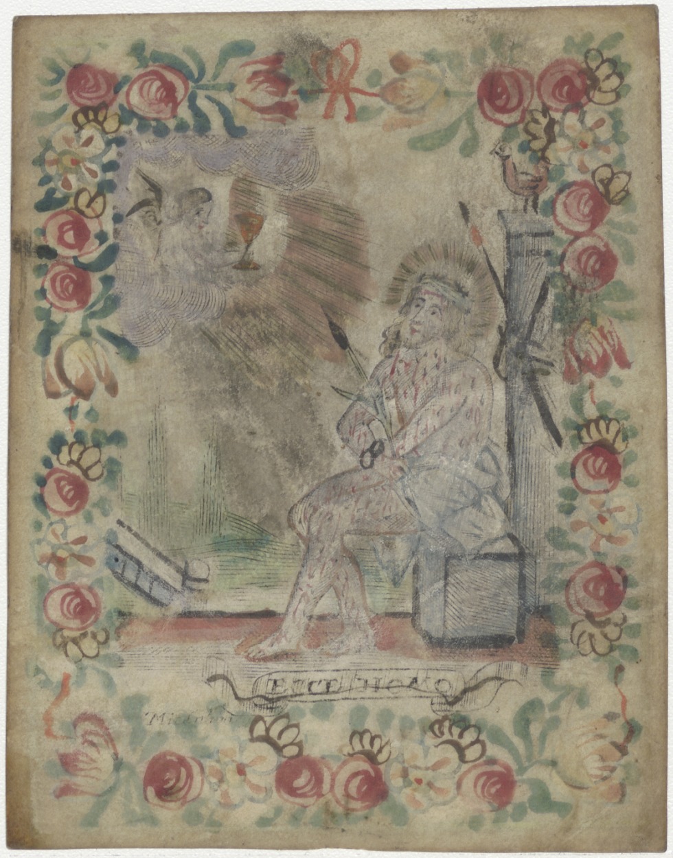 Lijdende Christus op de koude steen, ingekleurd, kz. Gedicht