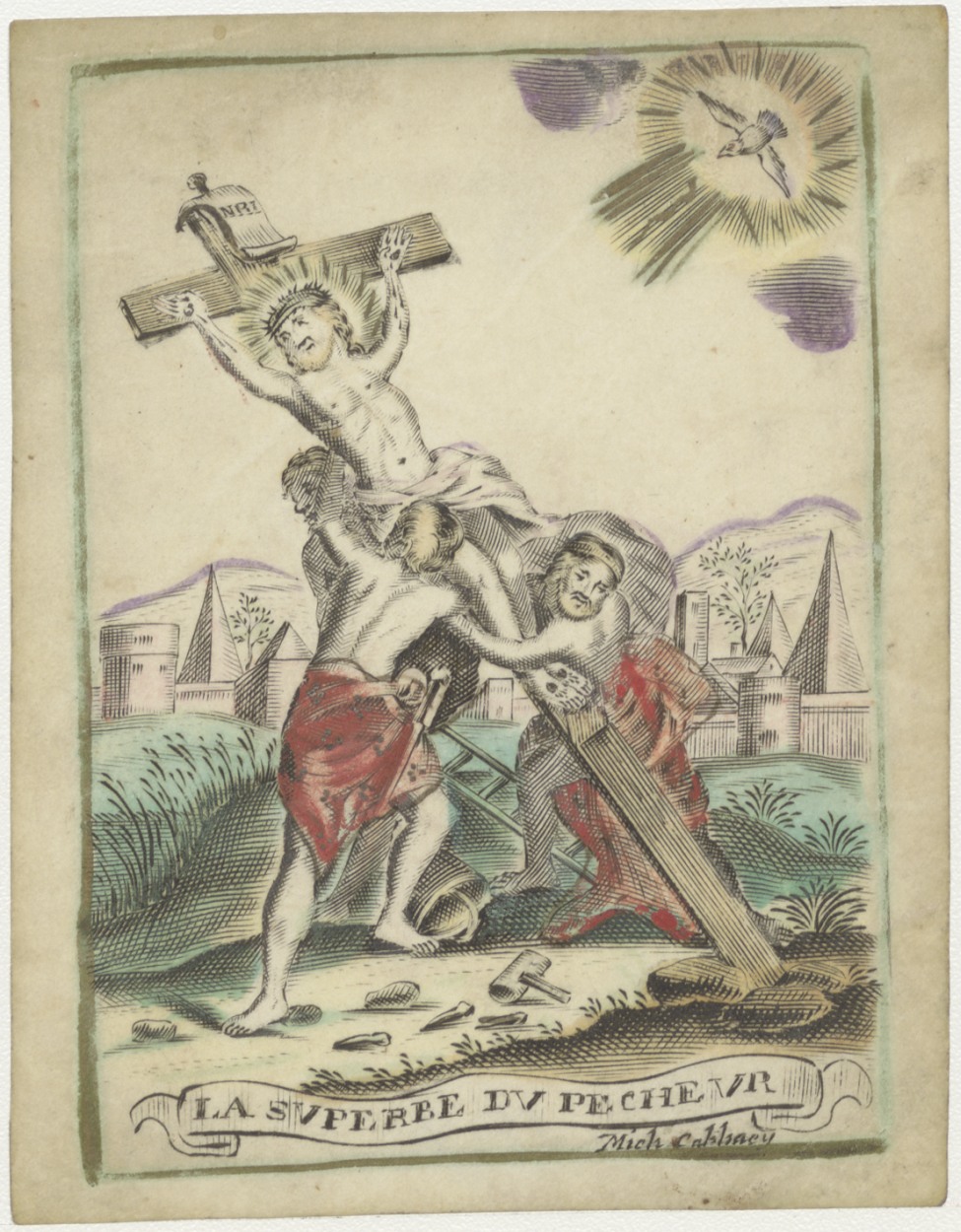 Oprichting van Christus' kruis, ingekleurd