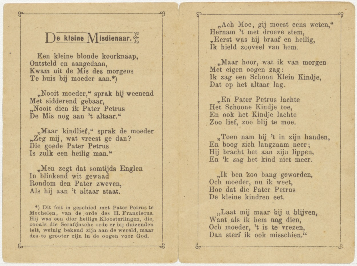 De kleine misdienaar; Het kindje Jezus in de hostie van de volksmissionaris, kz. gebed