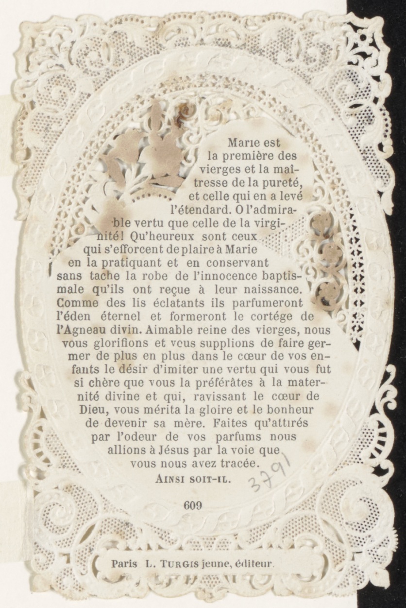 Maria met Christuskind, ingekleurd, kz. gebed (Frans)