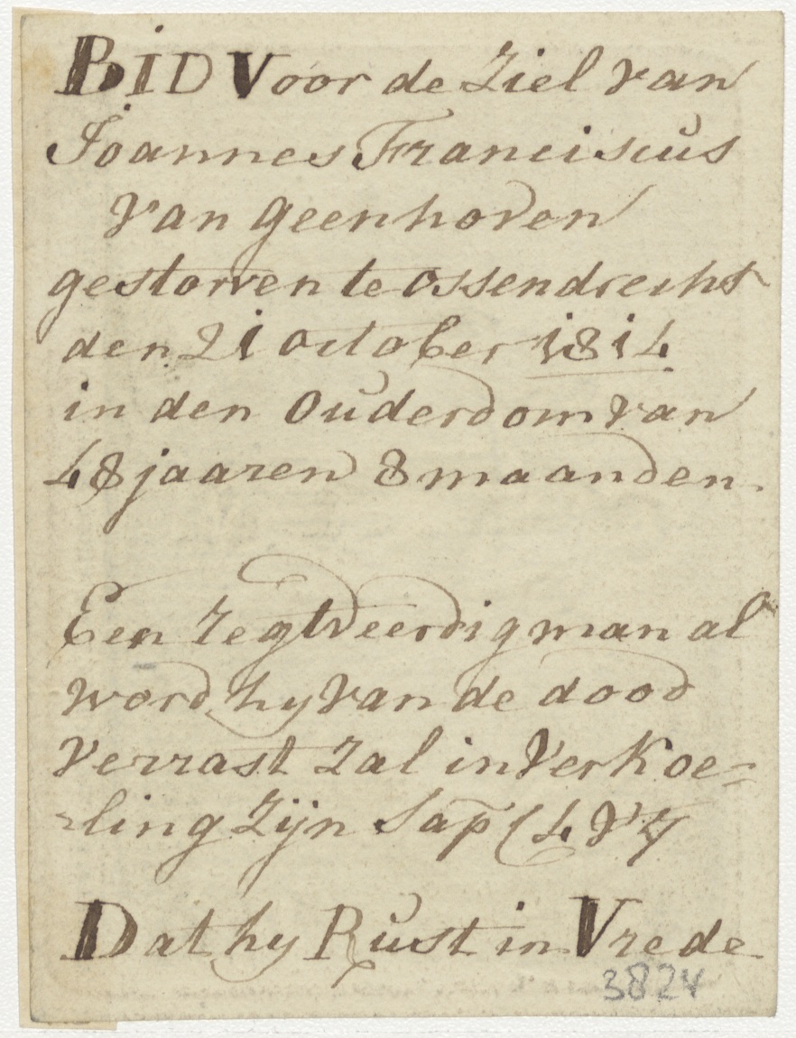 Maria, kz. Bid voor ziel van Geenhoven (+1814) Ossendrecht