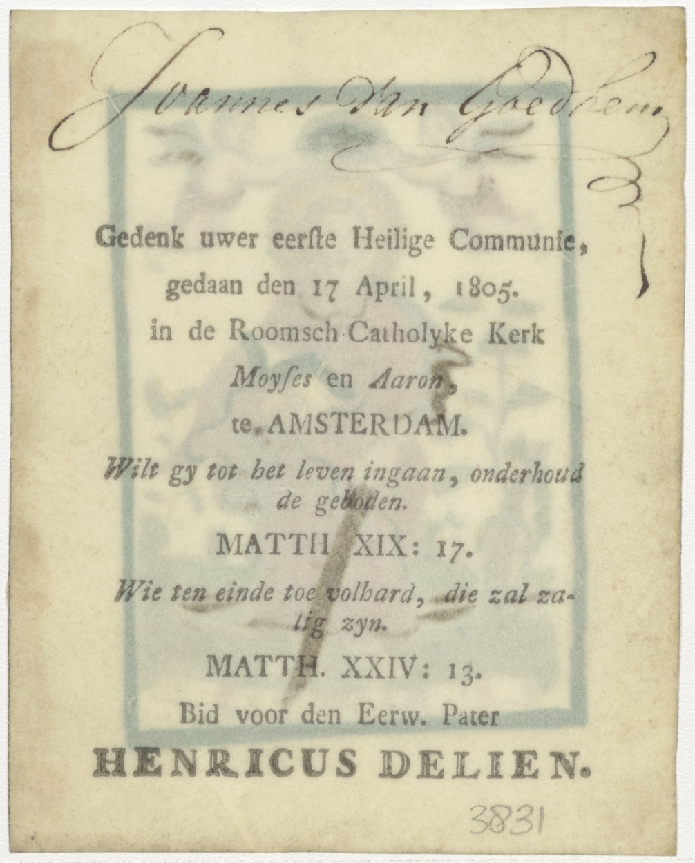 H. Paulus, ingekleurd, kz. H. Communie Goedhem;1805; pastoor Henricus Delien Moses eb Aaron Amsterdam